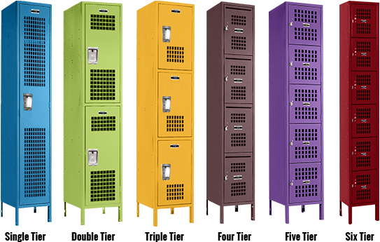 When storage demands require air circulation and visual inspection, Jorgenson Ventilated Lockers deliver an effective solution that is ideal for schools, gyms, recreation centers and more. We have built on our Signature model by adding rectangular perforations to the doors for enhanced performance and security in specific settings. Sides, tops and bottoms are constructed with 24-gauge metal supported by welded channel frames. The ventilated doors are crafted with 16-gauge metal for ensuring reliable strength. Door function is achieved with strong, five knuckle hinges welded to the door frame. Rubber bumpers and nylon glides on doors assist in seamless, quiet use. Doors operate with recessed, stainless steel handles secured with a three-point latching system for single to triple tier styles. Multi-tier styles utilize a quiet, friction-catch door pull with a single-point latch system. Single tier styles come standard with an upper hat shelf and zinc plated hooks, styles up to triple tier feature hooks in compartments. Coat rods are included on lockers that are 18” or deeper but can be added to lockers with a lesser depth upon request. Lockers are finished in our premium, scratch-resistant powder coat for maintaining a flawless exterior. Number plates come standard (Numbers 1 and up are included with each locker unless otherwise specified). Lockers can be ordered with or without 6” legs. Our Jorgenson Ventilated Series includes single, double, triple tier, multi-tier and Ventilated Employee Lockers with Mail Slots. Ventilated styles are available in a variety of sizes, configurations and 28 colors.